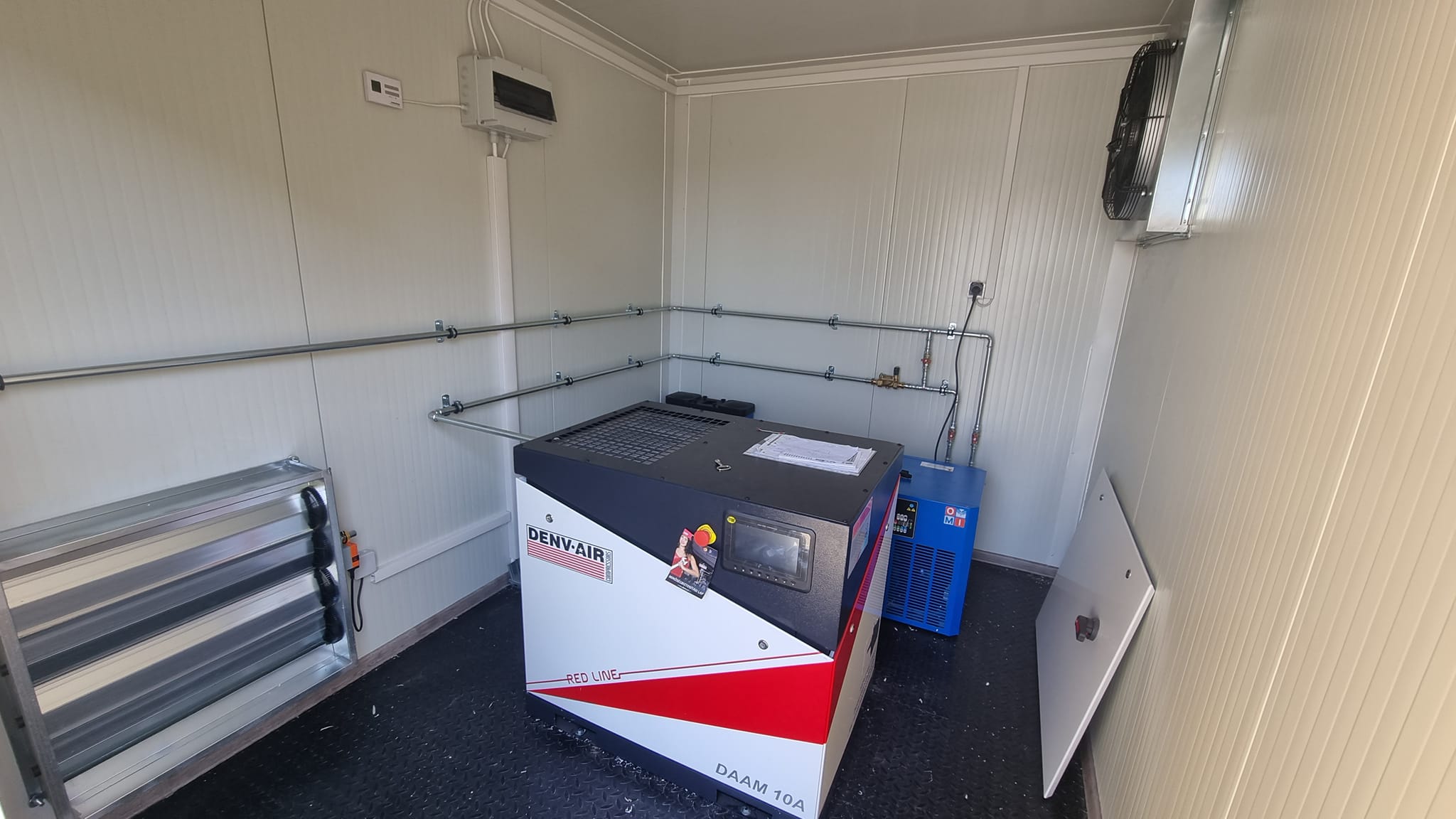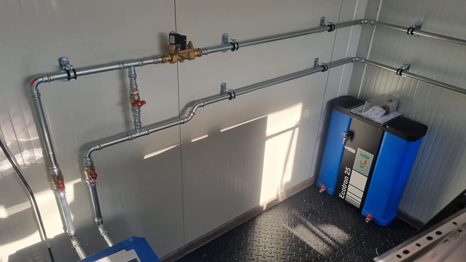 Vízmű vállalatok megbízására, komplett konténeres sűrítettlevegő állomásokat építünk a győri telephelyünkön. Energiatakarékos kompresszorok, teljes villamos vezérlés kialakítás, csőhálózat kiépítés, szellőzéstechnika, kondenzátum kezelés, fűtés és világítás. Leszállítás után azonnal üzembehelyezhető, csak egy beton alapra kell elhelyezni. Bármilyen elképzelést megvalósítunk, keressenek minket!